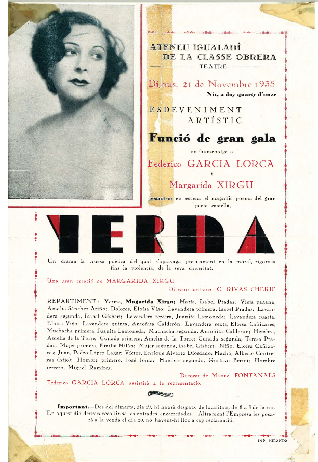 Aniversari de la visita de Federico García Lorca i Margarida Xirgu al Teatre Municipal de l’Ateneu per representar Lorca. Si vols saber tota la història prem aquí!