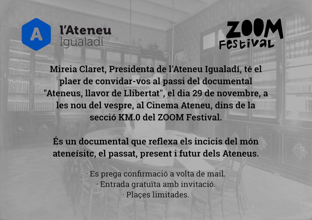'Ateneus, llavor de Llibertat' es projecta dins el ZOOM Festival