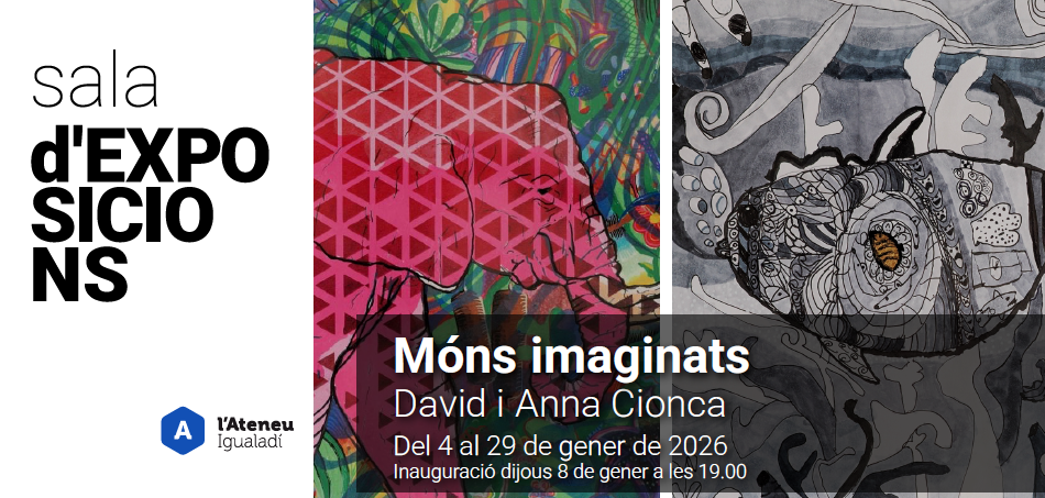 David Cionca i Anna Cionca són dos germans nascuts a Barcelona (2016 i 2014). Tots dos són alumnes de l’Escola Joan Maragall, a Vilanova del Camí. Durant el mes de gener ens presenten les seves obres pictòriques a la Sala d’Exposicions de l’Ateneu Igualadí. Uns quadres plens de vida i de color, amb detalls que no s’acaben mai. Una exposició que val la pena per donar suport a talents tant joves.